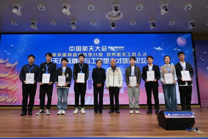 “五一”勞動節(jié)前夕,在武漢召開的中國航天大會“全國職業(yè)院??破招l(wèi)星研制工程邀請賽”頒獎儀式上,中國職業(yè)技術教育學會會長、教育部原副部長魯昕為技師學院獲獎選手代表邱世龍頒獎,并與中國運載火箭技術研究院龍樂豪院士一同和獲獎選手合影留念。