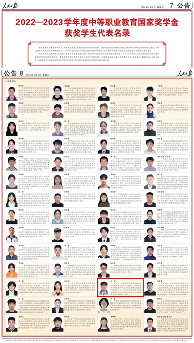 5月4日、5日,《人民日?qǐng)?bào)》專版刊登了100名研究生國家獎(jiǎng)學(xué)金獲獎(jiǎng)學(xué)生優(yōu)秀代表、100名本??粕鷩要?jiǎng)學(xué)金獲獎(jiǎng)學(xué)生優(yōu)秀代表、100名中等職業(yè)教育國家獎(jiǎng)學(xué)金獲獎(jiǎng)學(xué)生優(yōu)秀代表名錄。北京市工業(yè)技師學(xué)院環(huán)保與生物制藥系2021級(jí)環(huán)境保護(hù)與檢測(cè)專業(yè)學(xué)生王珂,榜上有名。