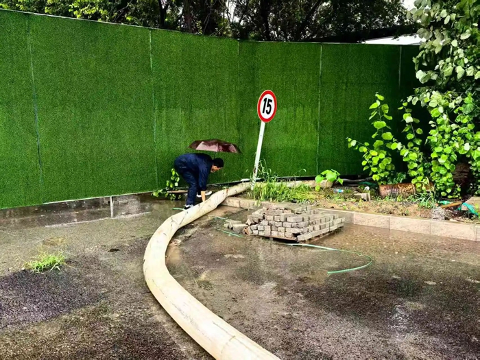 7月底,面對較強降雨,北搪公司安全人員盯在現(xiàn)場,及時鋪設(shè)防汛沙袋,防止路面水流倒灌;及時將排水泵安置在平房院內(nèi),隨時將低洼處積水排出;現(xiàn)場人員隨時上報各區(qū)域防汛情況,使公司領(lǐng)導能夠及時調(diào)配防汛人員和物資,筑牢防汛安全屏障。