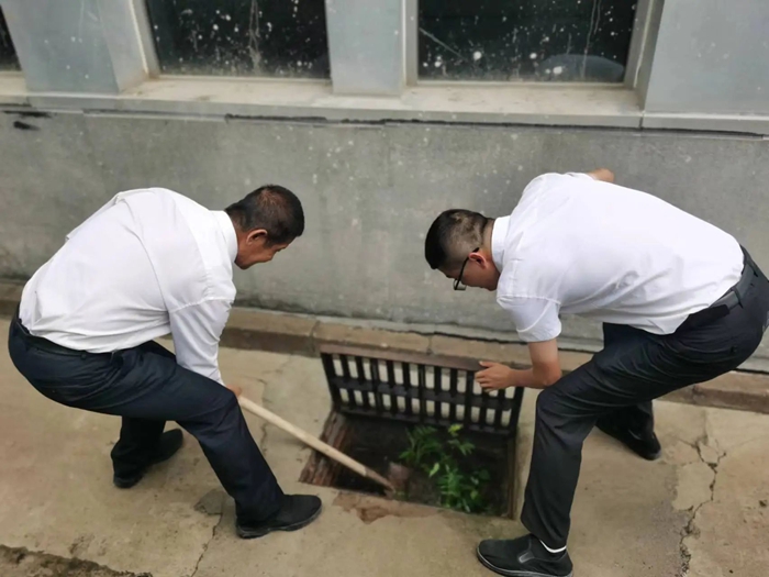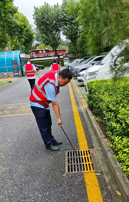 在接到暴雨紅色預警后,各事業(yè)部迅速行動,對樓宇屋面、排水管道、下水井等進行細致檢查,及時清理雜物,同時各事業(yè)部迅速將防汛物資補充到可能發(fā)生汛情的低洼位置,以便出現(xiàn)險情第一時間救援。