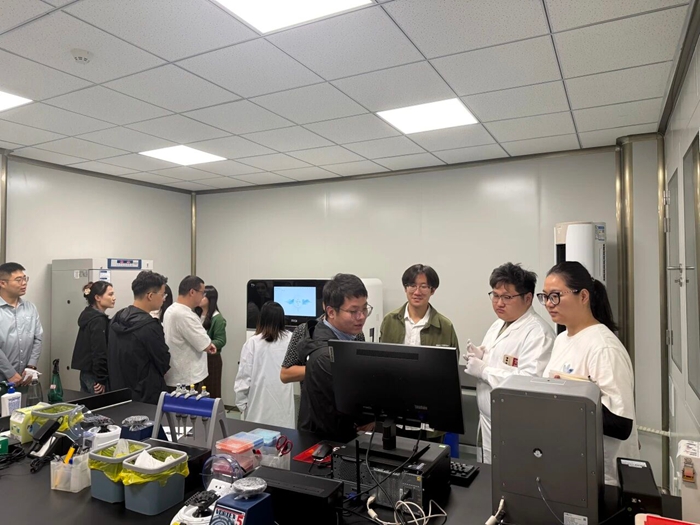 團(tuán)員青年們來到毗鄰清華大學(xué)、北京大學(xué)的北化生科公司國(guó)際生物島現(xiàn)場(chǎng)參觀學(xué)習(xí)。工作人員介紹了北化生科公司的整體規(guī)劃與發(fā)展歷程,重點(diǎn)介紹了集團(tuán)生物醫(yī)藥產(chǎn)業(yè)布局、核心服務(wù)平臺(tái)功能、重點(diǎn)產(chǎn)業(yè)集群優(yōu)勢(shì)以及未來發(fā)展目標(biāo)愿景。隨后,團(tuán)員青年們走進(jìn)實(shí)驗(yàn)室,專業(yè)人員為他們講解了基因測(cè)序等基礎(chǔ)知識(shí),并結(jié)合正在開展的科研項(xiàng)目,生動(dòng)介紹了這些技術(shù)在實(shí)際研發(fā)中的應(yīng)用場(chǎng)景與巨大潛力。