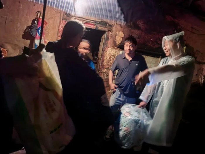 汛情就是命令。面對突如其來的洪水,本就日夜堅守在村委會的李東,與村委委員一起連夜趟著洪水,去多戶村民家中查看水位和房屋漏雨情況,在冒雨拉網(wǎng)式檢查中,李東和村委委員先后將2戶有安全隱患房屋內(nèi)的6名村民,連夜轉(zhuǎn)移至村委會臨時安置點。當(dāng)大家要喘口氣歇歇腳兒時,28日凌晨3時許得到消息,位于村口的小商店出現(xiàn)險情,60多歲的老兩口被困店內(nèi)。接到消息,李東和村委委員緊急出發(fā)。由于洪水流速非常快,他們小心翼翼地扶著墻體前行。在到達商店后,此時洪水已經(jīng)淹沒房屋門檻灌入店內(nèi)。面對緊急情況,李東和村委會干部們?nèi)饩缺焕Ю先?。李東在前面小心探路,另外兩人護住老人,在大雨中最終將兩位老人撤離到安全地帶。