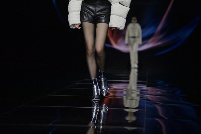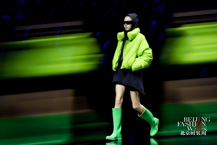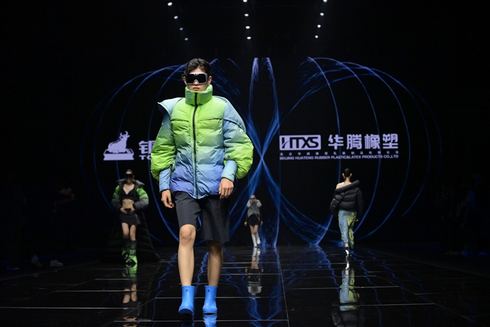 整個(gè)秀場(chǎng),靚麗前衛(wèi)的膠靴或踏于足下,或成為時(shí)尚新品挎于體側(cè),伴著強(qiáng)勁的樂曲,綻放出化工科技在時(shí)尚前沿的另類美學(xué)。