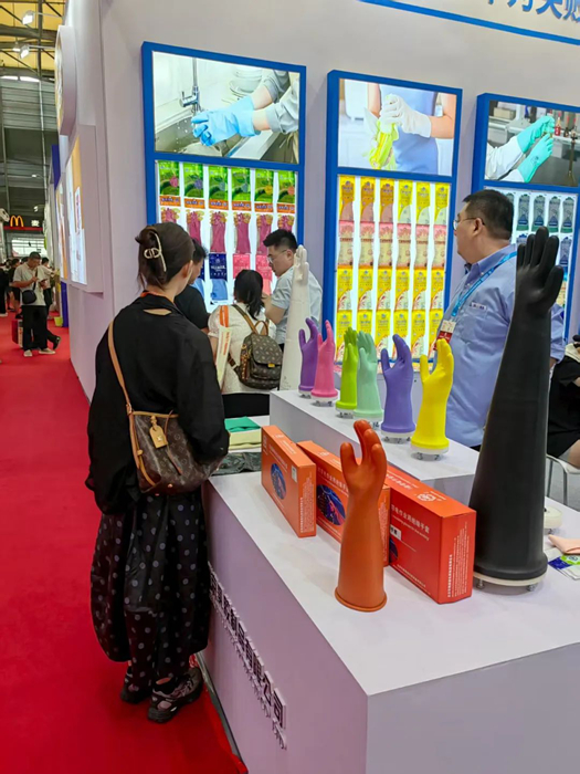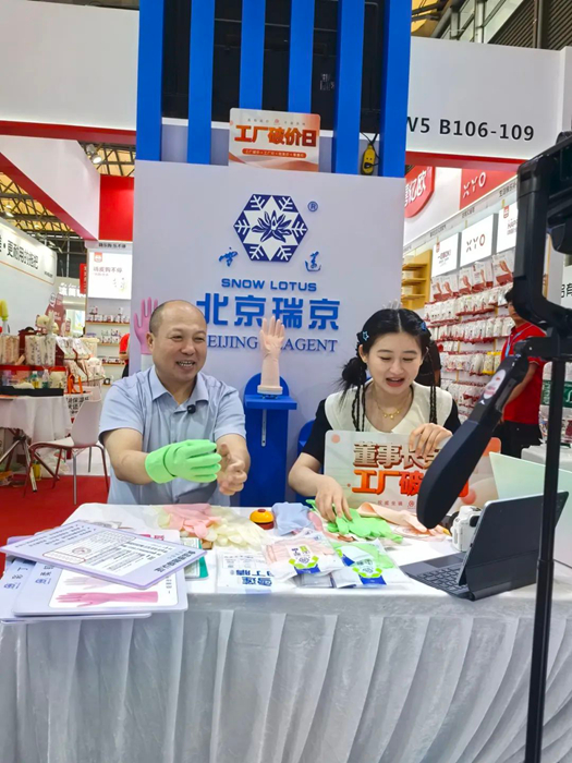 通過現(xiàn)場試用體驗、功能演示等互動環(huán)節(jié),瑞京公司人員向觀眾直觀呈現(xiàn)出產(chǎn)品的舒適性和防護性能,吸引了眾多客商駐足咨詢。公司產(chǎn)品獲得現(xiàn)場觀眾的一致好評,同時進一步鞏固了瑞京公司在乳膠手套領(lǐng)域的品牌影響力。